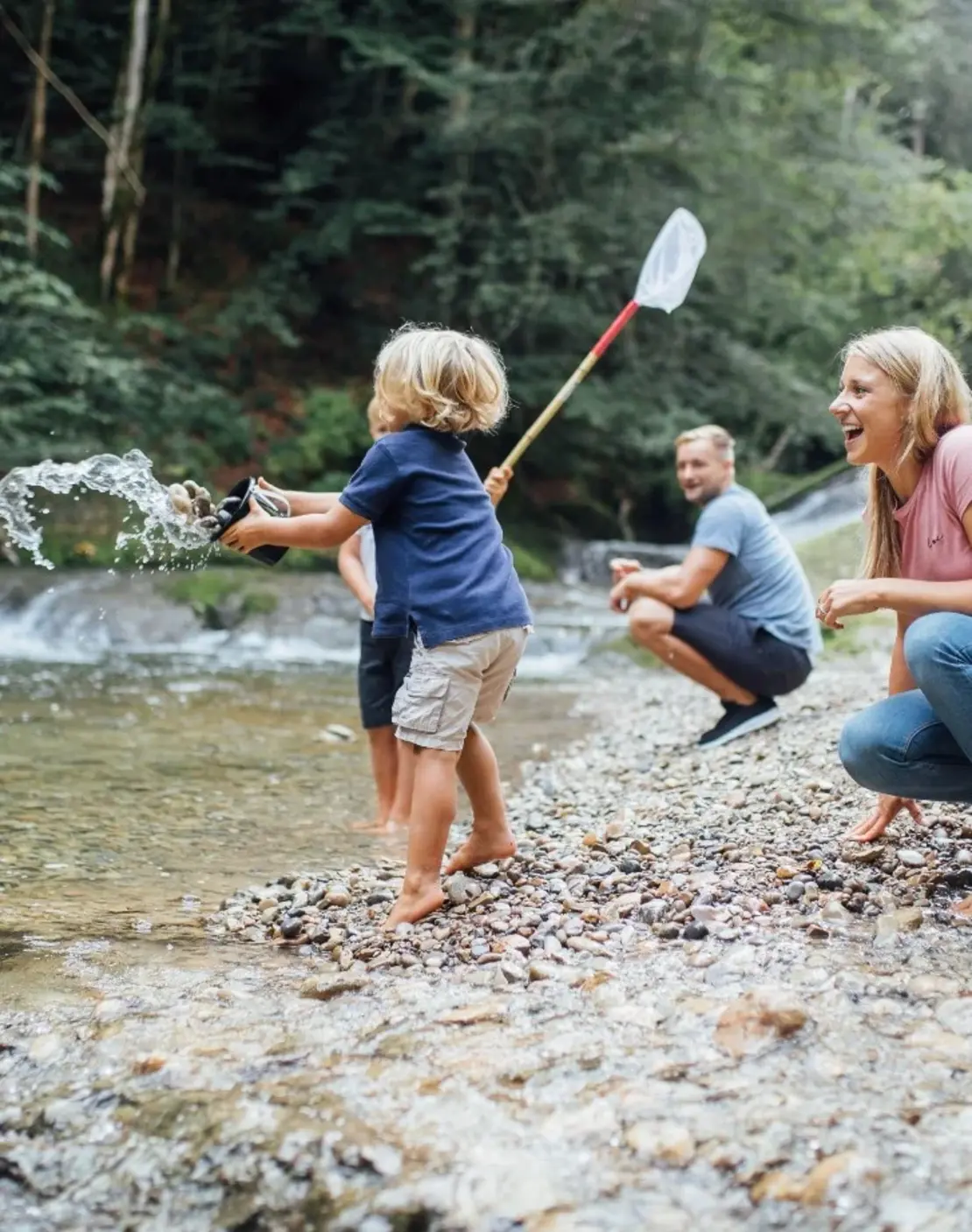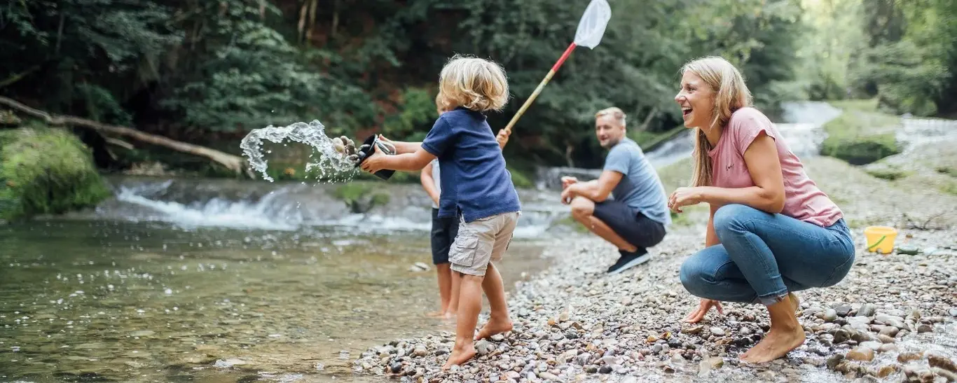 Mit Bestimmungsbüchern und Keschern geht es auf Entdeckungsreise. Da werden aus Ästen und Steinen, ganz wie die Biber, Dämme gebastelt. Selbstgebaute Papierschiffchen schwimmen den Bach hinunter und die Teichbewohner werden unter die Lupe genommen. Zur Krönung gibt es nach den sportlichen Wanderungen und spannenden Erlebnissen ein kühles Bad in den zahlreichen „Naturbadewannen“ des Allgäus. Die Gumpen, natürliche Vertiefungen von den Flussläufen gegraben, sind vor allem bei Wanderern sehr beliebt.