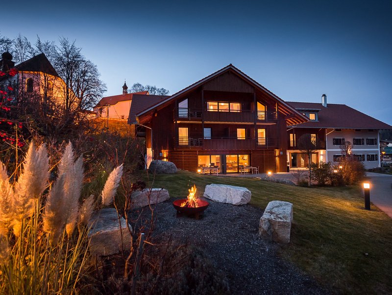Seit 350 Jahren ist das neuerbaute Landhaus mit Bauernhof in Familienbesitz - mit alter Tradition und bewegter Geschichte. Es erwatet Dich die herrlich, sonnige Einzellage am Waldesrand mit zauberhaftem Blick auf den Forggensee. Du genießt familiäre Atmosphäre und wohnst in vom DTV mit 3 und 4 Sternen ausgezeichneten Ferienwohnungen. Darüber hinaus erwatet Gäste, die etwas für Wohlbefinden und Gesundheit tun wollen, ein kleiner Wellnessbereich mit Sauna und mediterranem Ruheraum, sowie ein Fitnessraum.