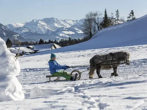 Inmitten der herrlichen Allgäuer Landschaft - zwischen Kempten und Oberstdorf - befindet sich der idyllisch gelegene Ferienhof der Familie Köberle. Die mit 3 und 4 Sternen vom DTV ausgezeichneten Ferienwohnungen wurden mit viel Liebe eingerichtet und bietet allen Komfort für einen erholsamen Urlaub. Jede Menge Streicheltiere wie Katzen, Ziegen, Hasen, Schafe, Kälbchen und ein Pony wollen gestreichlt, gestriegelt und gefüttert werden. Und wenn das Wetter mal nicht so schön ist, dann können sich die Kinder beim Heuhüpfen in der Spielscheune austoben!